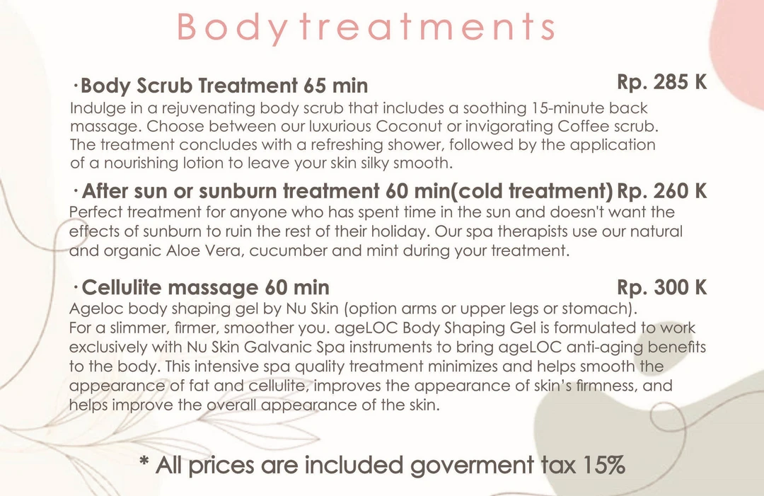 Indulge in a rejuvenating body scrub that includes a soothing 15-minute back massage. Choose between our luxurious Coconut or invigorating Coffee scrub. The treatment concludes with a refreshing shower, followed by the application of a nourishing lotion to leave your skin silky smooth.